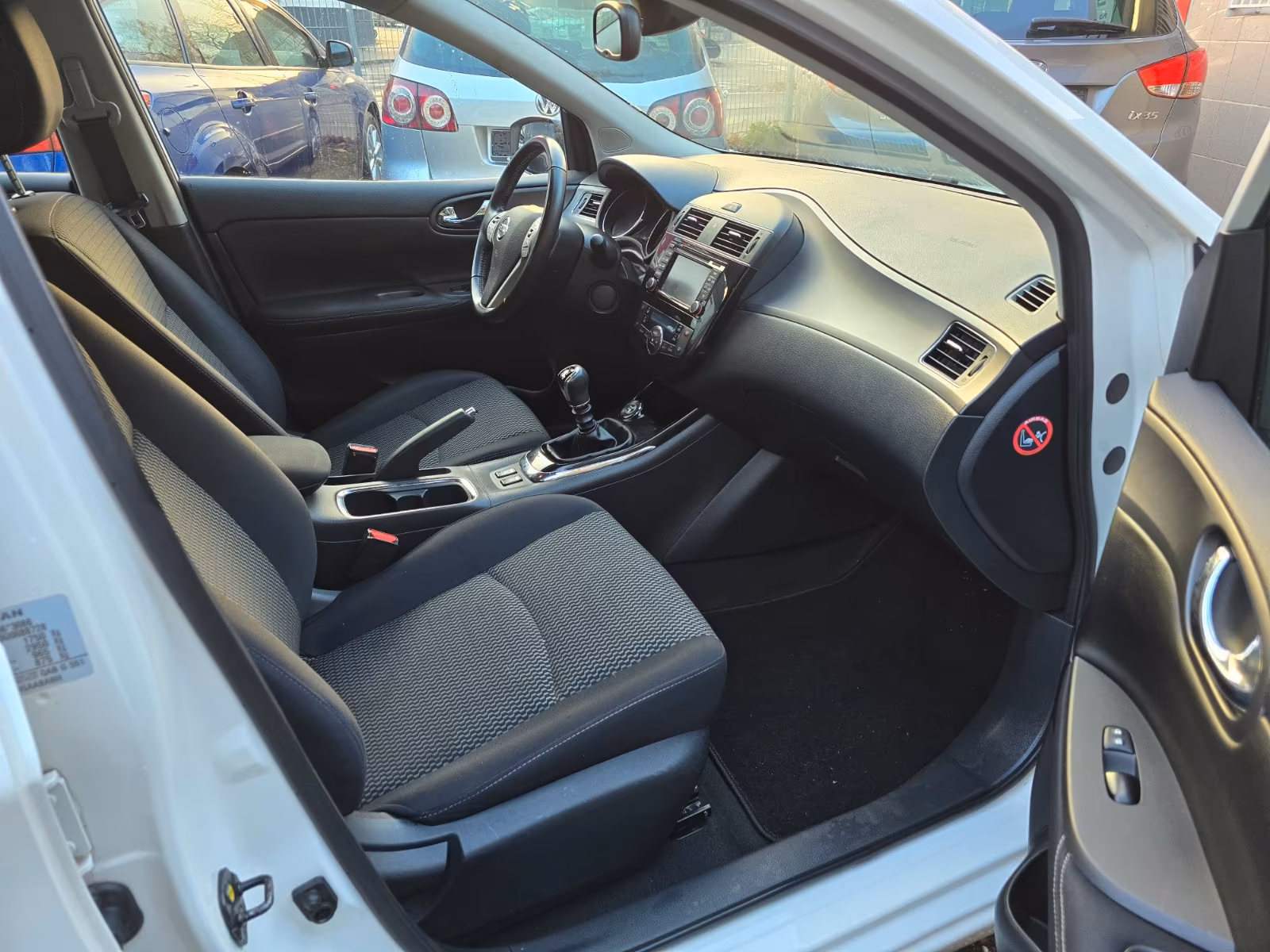 3. Bremsleuchte, Airbag Beifahrerseite abschaltbar, Airbag Fahrer-/Beifahrerseite und Seitenairbag vorn, Audio-/Bordcomputerbedienung am Lenkrad, Audiosystem: Radio mit CD- und MP3-Player, Automatische Fahrlichtschaltung, Außenspiegel elektr. verstellbar, Außenspiegel heizbar, Außenspiegel Wagenfarbe, Blinkleuchte in Außenspiegel integriert, Bluetooth-Schnittstelle, Bordcomputer, Bremsassistent (Nissan Brake-Assist), Fahrassistenz-System: Autonomer Notbrems-Assistent, Fahrassistenz-System: Kurvenbremskontrolle (Aktive Spurkontrolle), Fahrer-Informations-System (FIS) mit Farbdisplay, Fensterheber elektrisch vorn + hinten, Fernentriegelung Tankklappe, Frontscheibe Verbundglas, Gepäckraumabdeckung / Rollo, Getränkehalter hinten, Getränkehalter vorn, Gurtstraffer, Handschuhfach beleuchtet, Heckscheibe heizbar, Innenspiegel mit Abblendautomatik, Isofix-Aufnahmen für Kindersitz, Karosserie: 5-türig, Kindersicherung, Klimaautomatik 2-Zonen, Kopf-Airbag-System, Kopfstützen vorn und hinten verstellbar, Lenksäule (Lenkrad) höhen-/längsverstellbar, Leseleuchte vorn, Mittelarmlehne hinten, Motor 1,2 Ltr. - 85 kW 16V KAT, Nebelschlussleuchte, Reifen-Reparaturset, Reifendruck-Kontrollsystem, Rücksitz geteilt/klappbar, Schadstoffarm nach Abgasnorm Euro 6, Schalt-/Wählhebelgriff Leder, Schaltpunktanzeige, Scheibenwischer mit Intervallschaltung, Sitz vorn links höhenverstellbar, Sitzbezug / Polsterung: Stoff, Sonnenblenden mit Spiegel, Start/Stop-Anlage, Steckdose (12V-Anschluß) in Mittelkonsole, Türgriffe innen verchromt, USB-Schnittstelle, Wärmeschutzverglasung mit UV-Schutz