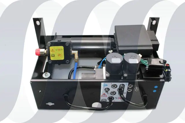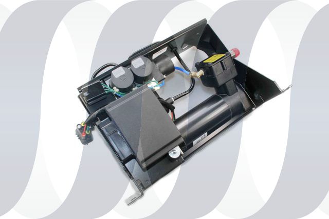 Die Kompressoreinheit ist ein von Dunlop hergestelltes Originalteil für das werkseitig eingebaute Luftfedersystem von Nissan-Nutzfahrzeugen. Die Compressor Unit ist komplett und mit einem neuen Kompressor, Fronttrockner und Steuergerät ausgestattet.